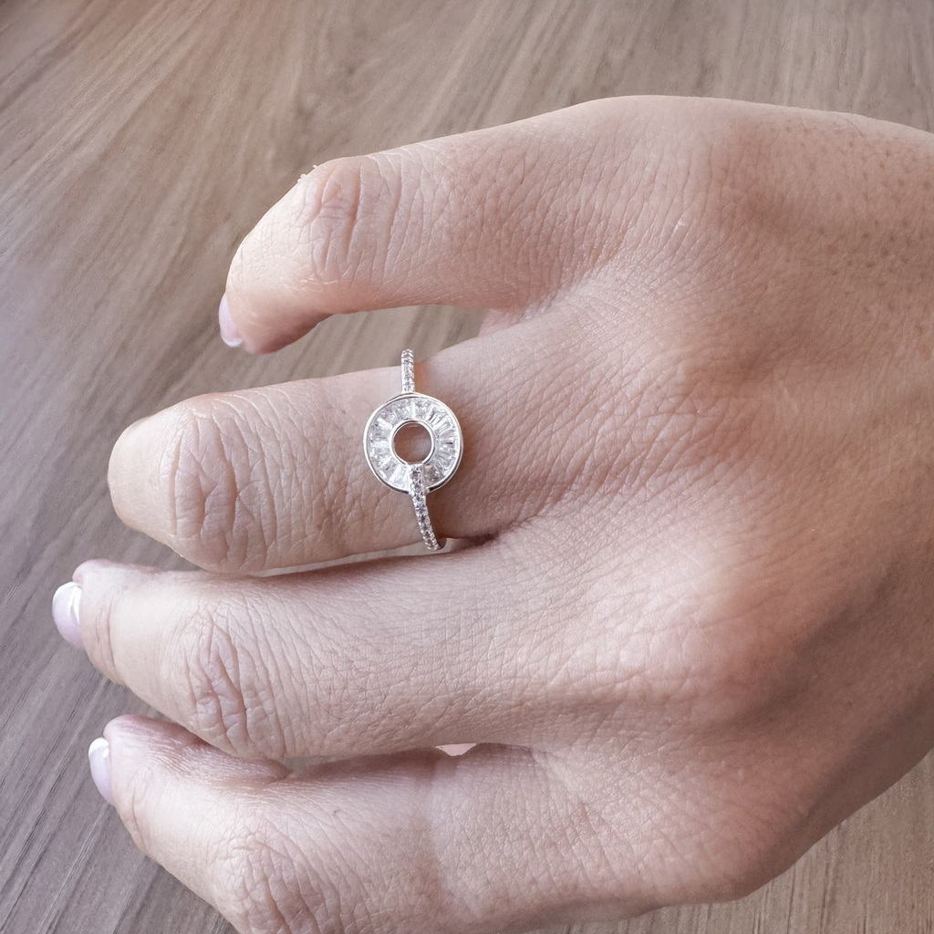 Anel Cravação Inglesa Laterais Cravejadas é para você que quer adqurir uma jóia elegante com desing diferenciado. Além disso, os acessórios em formas geométricas dão um toque de originalidade e modernidade.