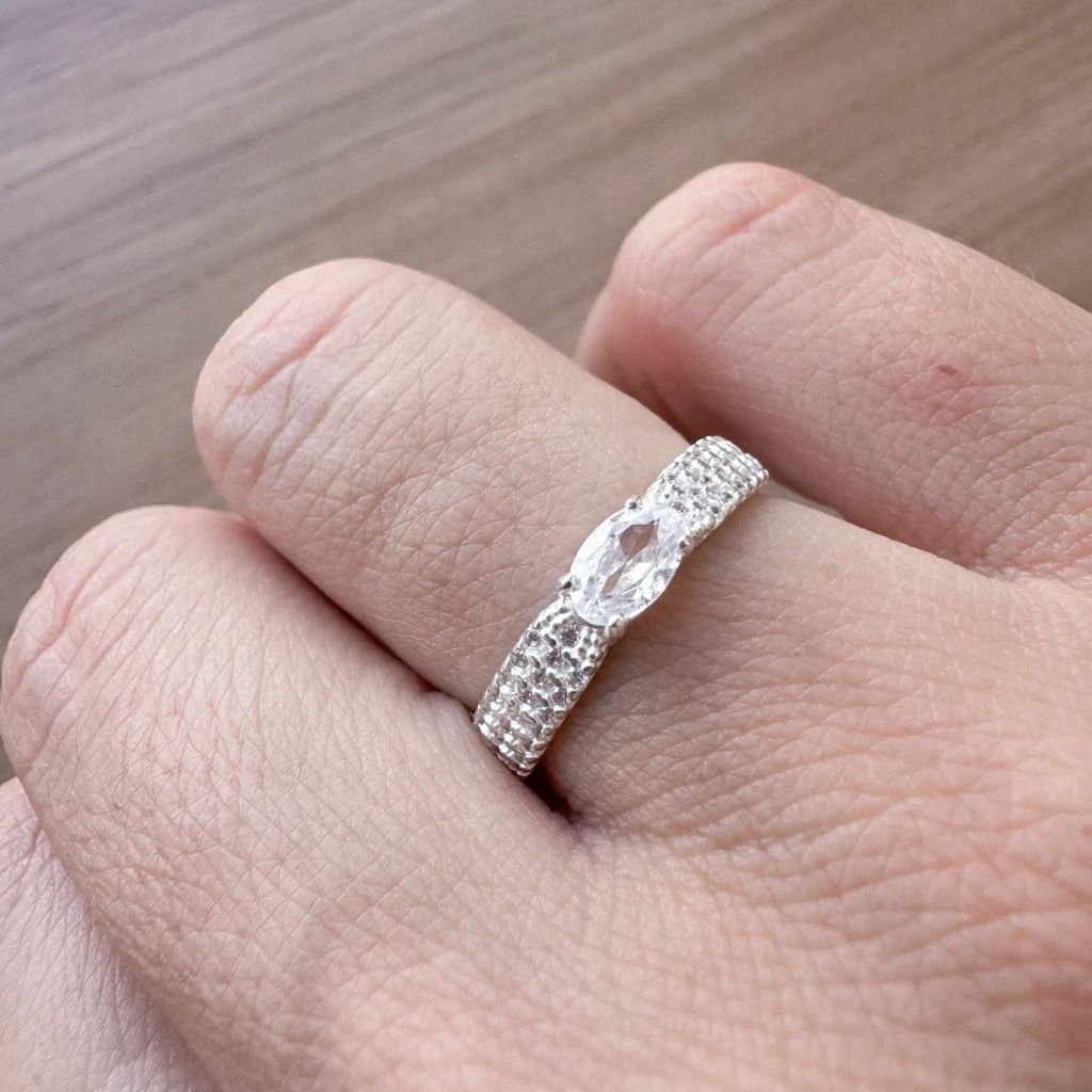 Anel Cravejado E Pedra Oval De Lado é para você que quer adquirir uma jóia moderna e elegante.