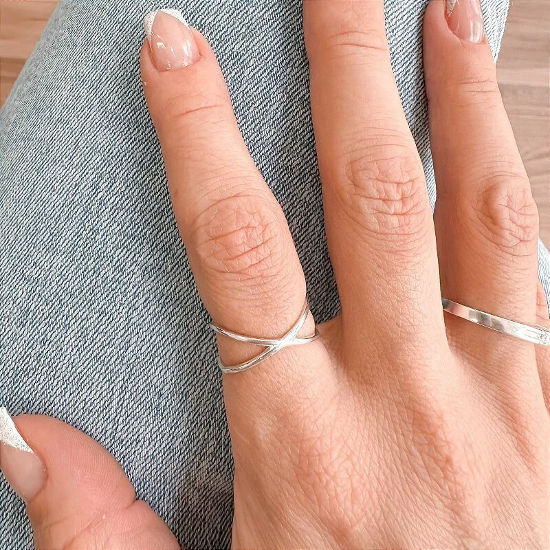 Anel dois aros intercalados.