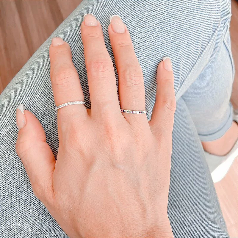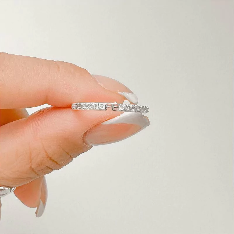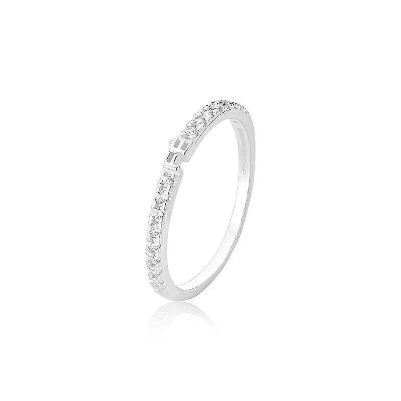 Anel meia aliança escrito fé entre as pedras.