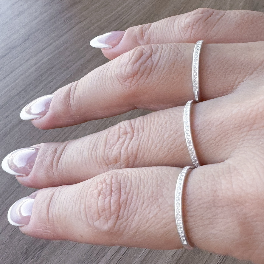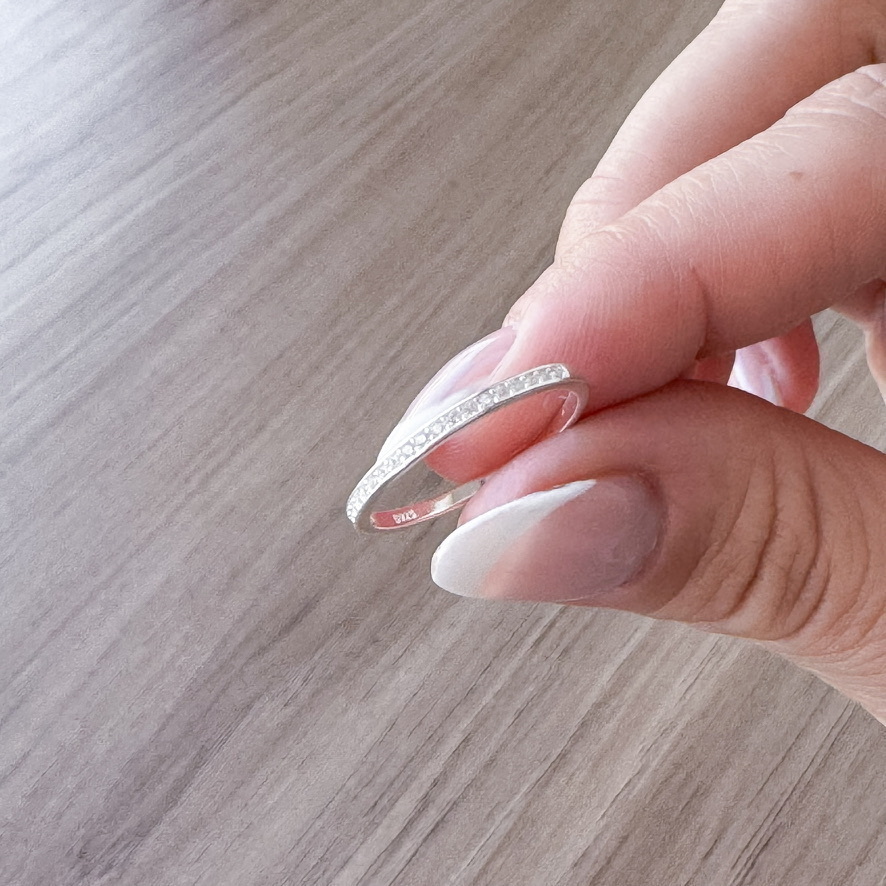 Anel Meia Aliança Cravação Inglesa é para você que quer garantir uma jóia atemporal e delicada. A meia aliança ou aparador é, basicamente, um modelo de anel que tem como finalidade "aparar" ou "segurar" a própria aliança, no entanto, passou a ser usada também de diversas outras formas e composições.