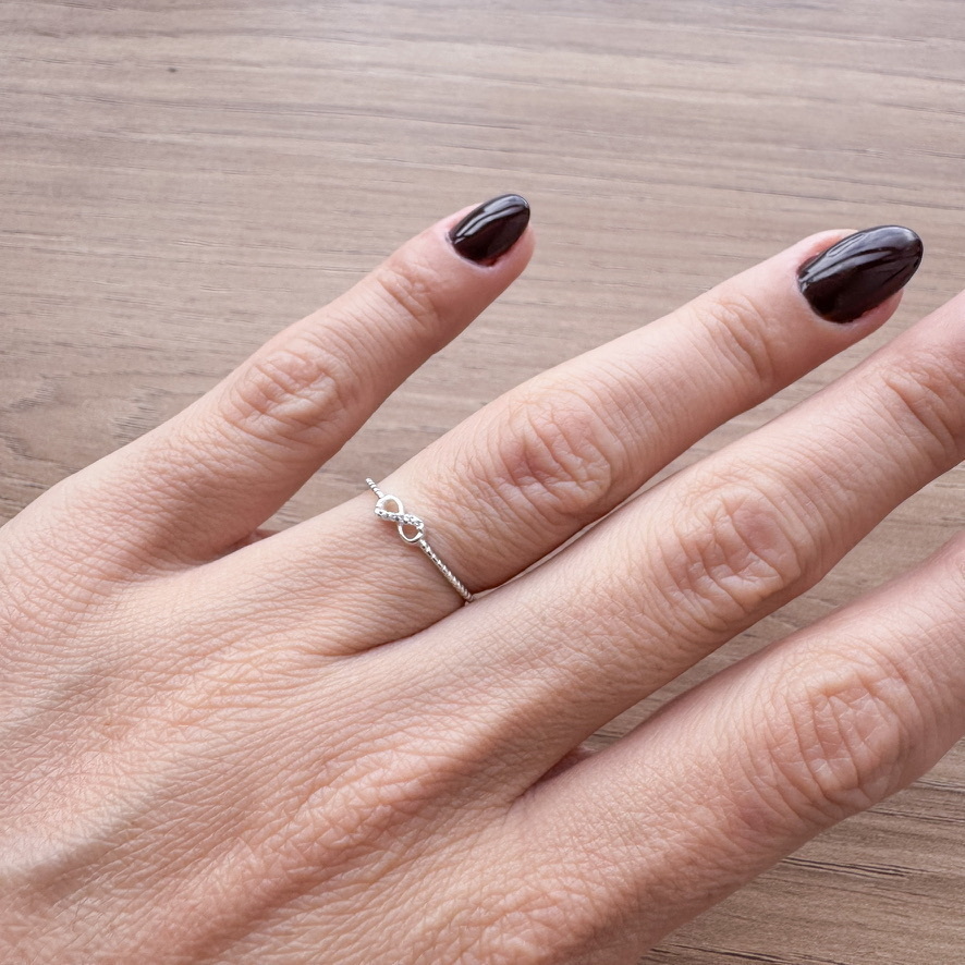 Anel Mini Infinito Cravejado representa o amor eterno, a conexão inquebrável e a continuidade. Ele é uma escolha popular para joias que simbolizam relações especiais, como namoro, noivado ou amizade.