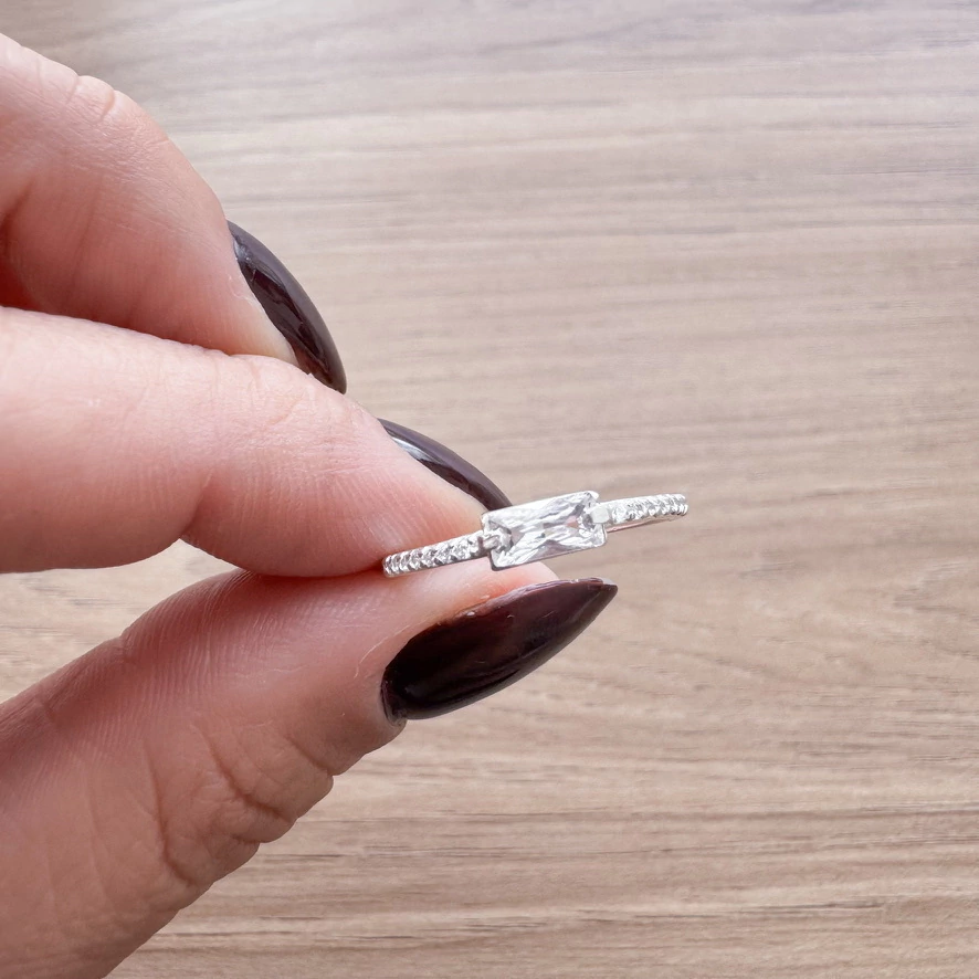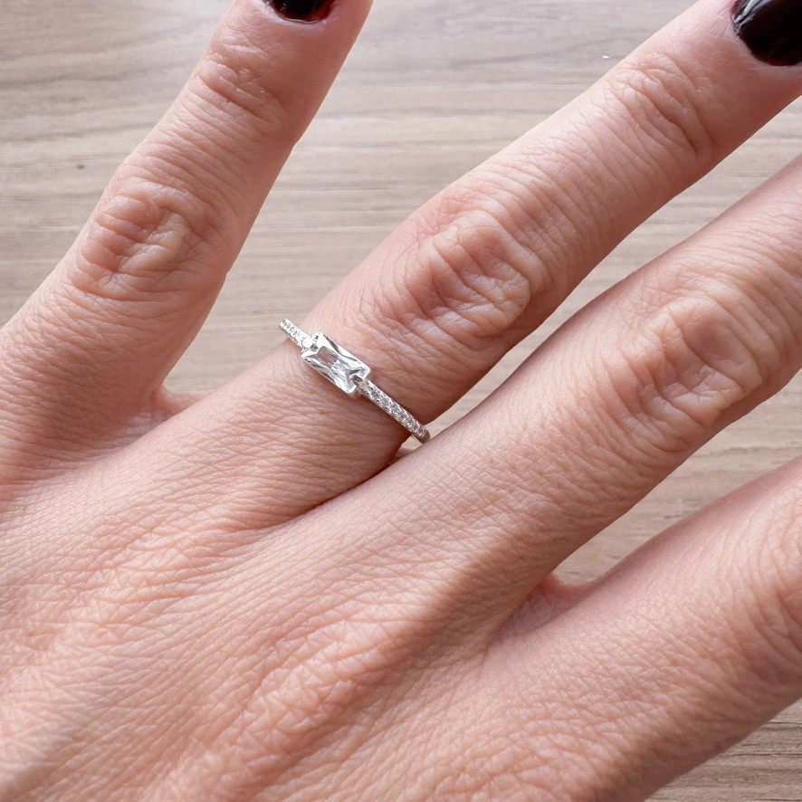 Anel Pedra Retangular é uma jóia que combina a forma geométrica moderna com a transparência e o brilho do cristal criando um acessório que une a estética contemporânea com propriedades espirituais e energéticas.