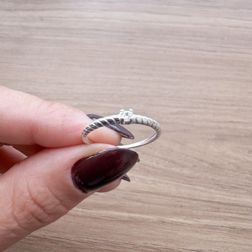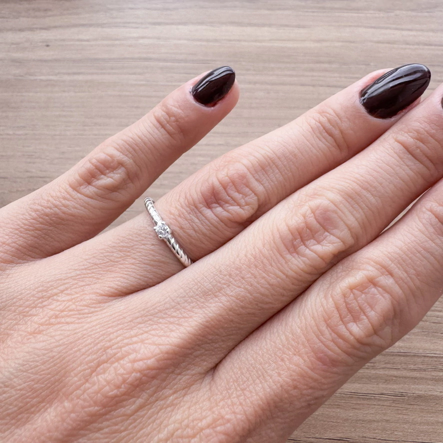 Anel Solitário Aro Torcido combina o significado clássico do anel solitário, que simboliza amor eterno, compromisso e união com a delicadeza e a modernidade do aro torcido. O design com o aro torcido confere um toque de exclusividade e sofisticação à joia.