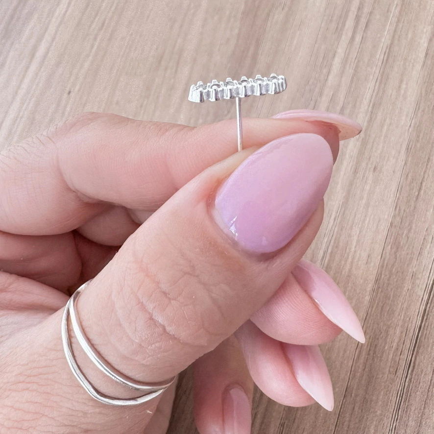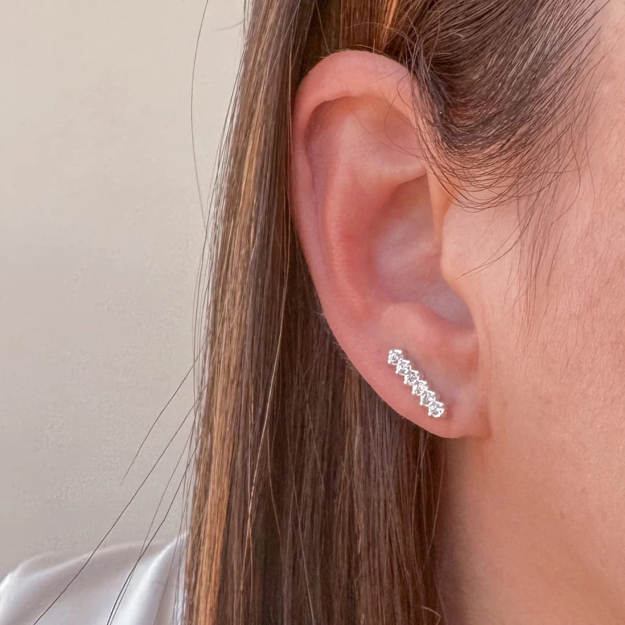 Brinco traço com pedras cravejadas.