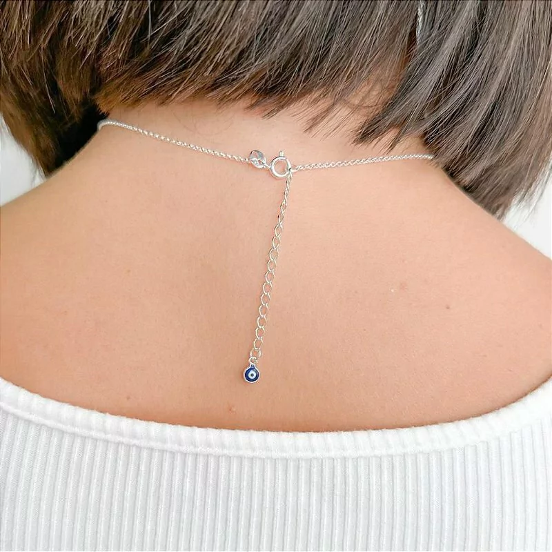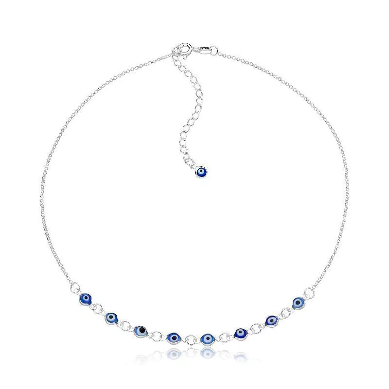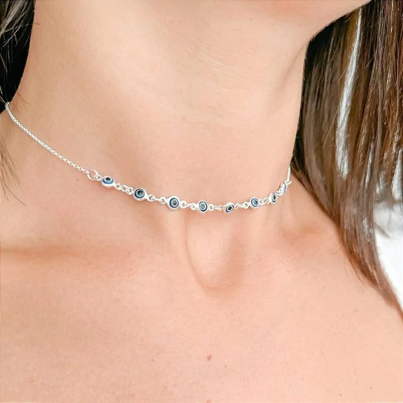 Colar choker com elos português e 8 olhos grego e olho grego na ponta do extensor.