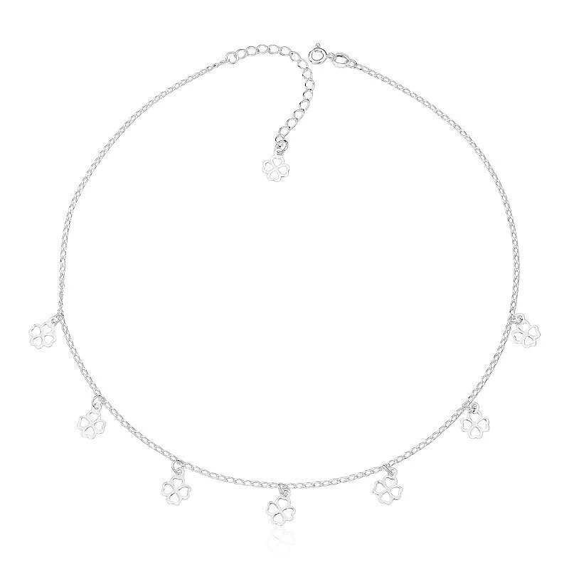 Colar estilo choker de corrente grumet longa e pingentes de trevo.