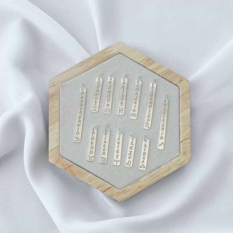Pingente plaquinha com signo Áries e símbolo vazado.