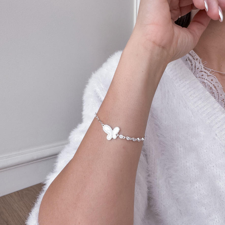 Pulseira Borboleta Madrepérola Elos Ovais 5 Pedras
