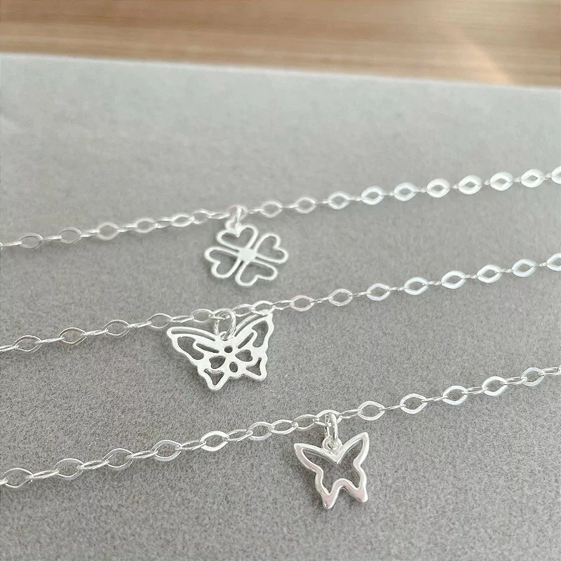 Pulseira elos ovais e borboleta vazada pendurada.