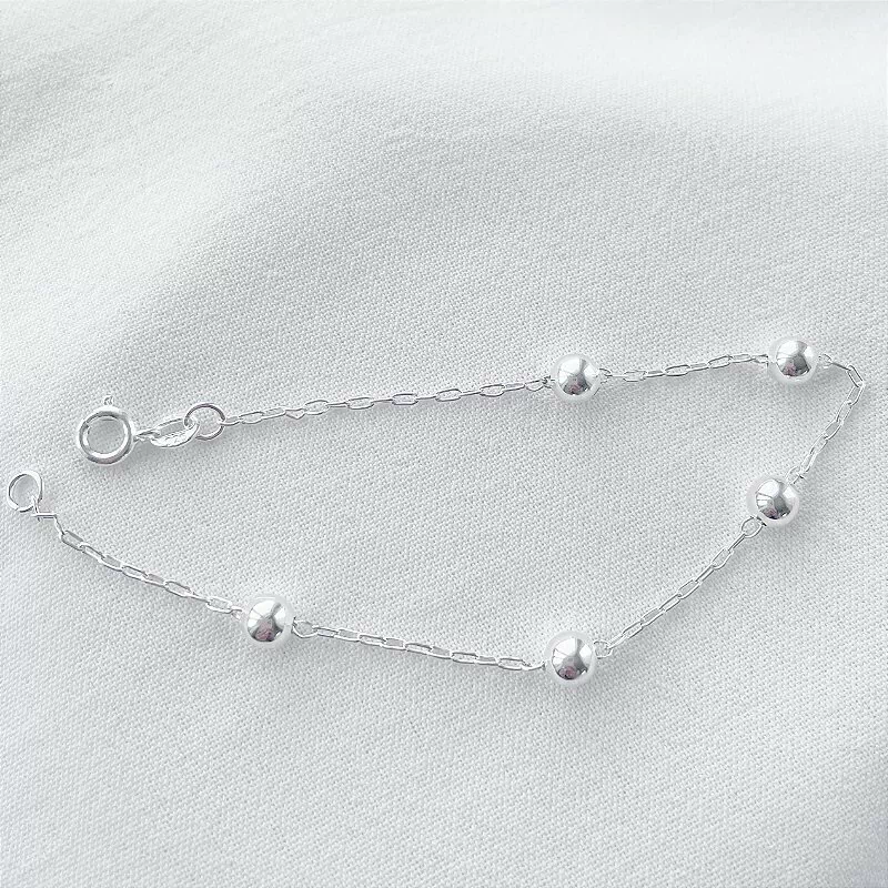 | Pulseira cadeado longo com cinco bolinhas de 5mm cada. | |||