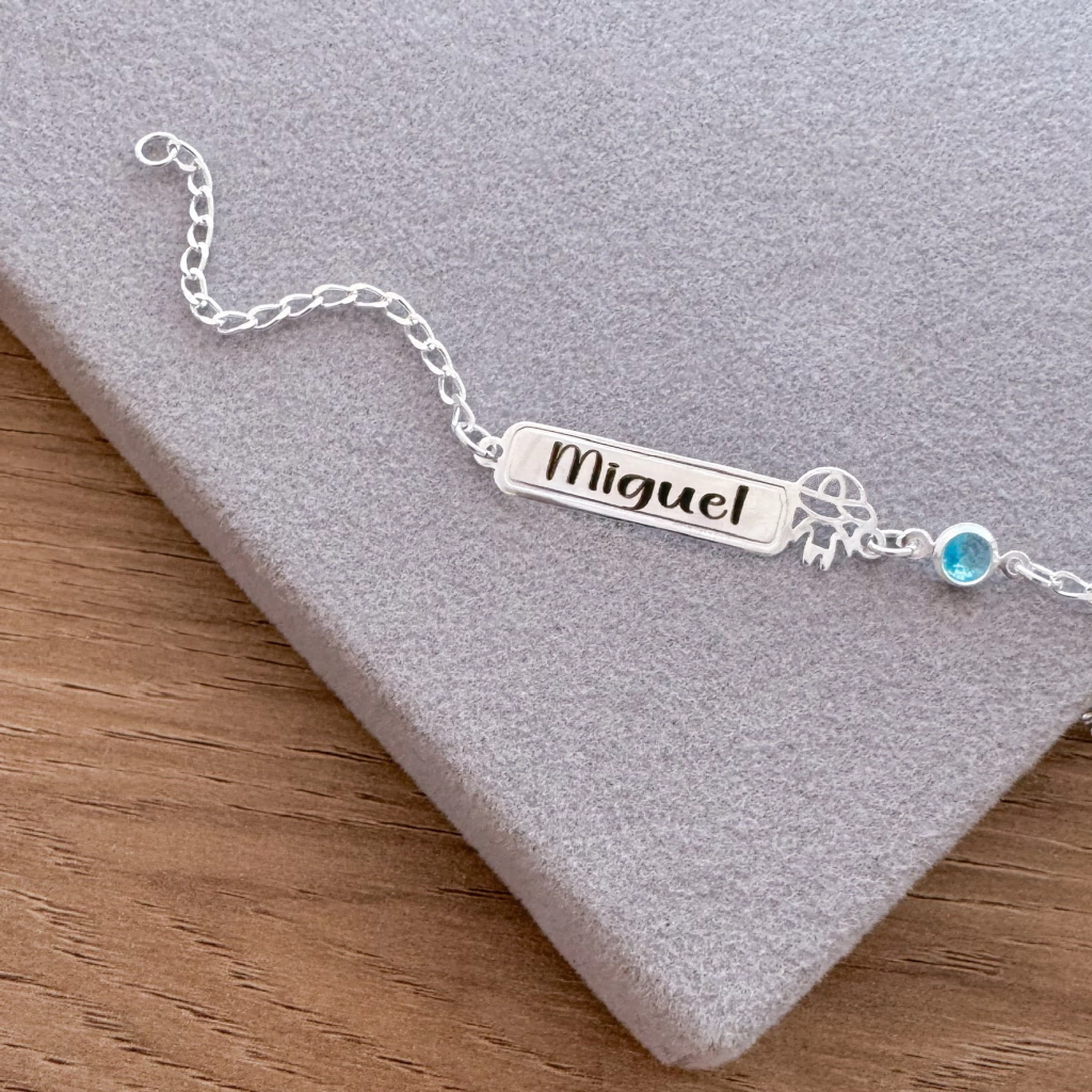 Pulseira infantil com plaquinha retangular com menino vazado.