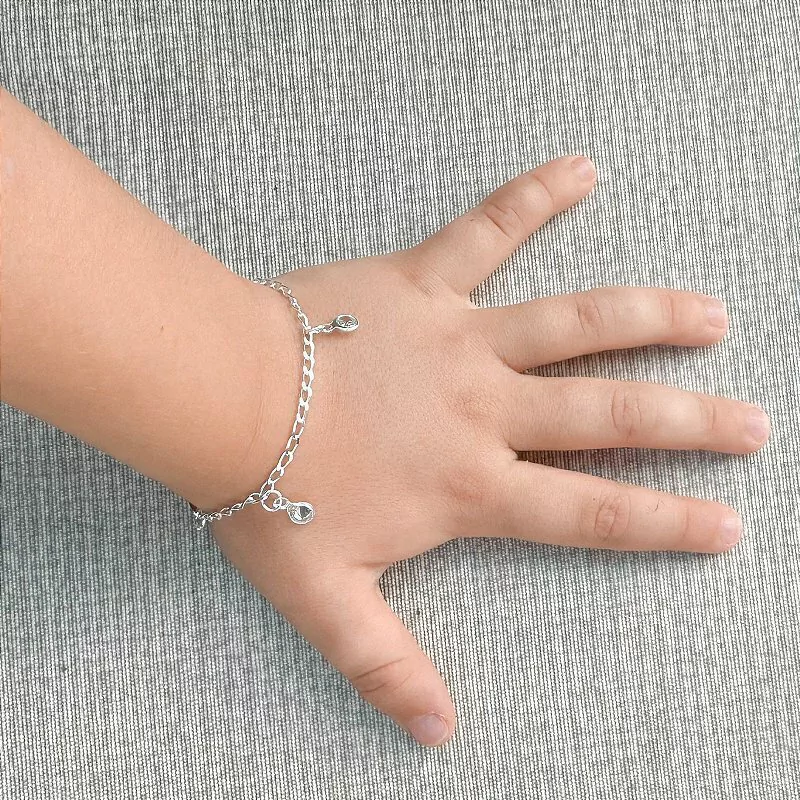 Pulseira infantil elos grumet e pingentes pontos de luz pendurado.