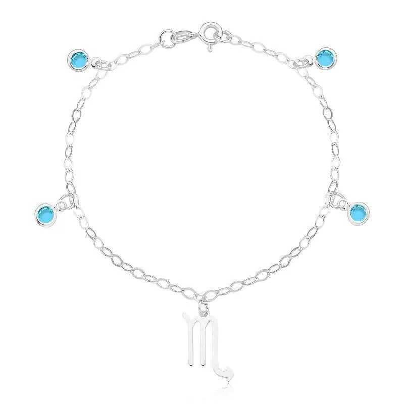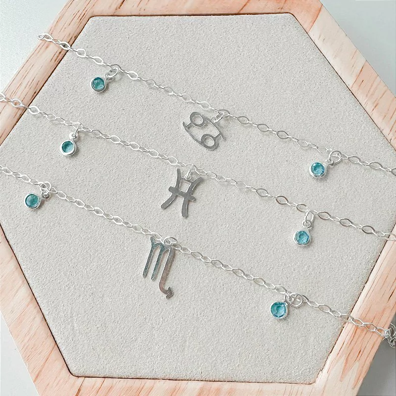 Pulseira signo de escorpião com quatro pedras azul clara.